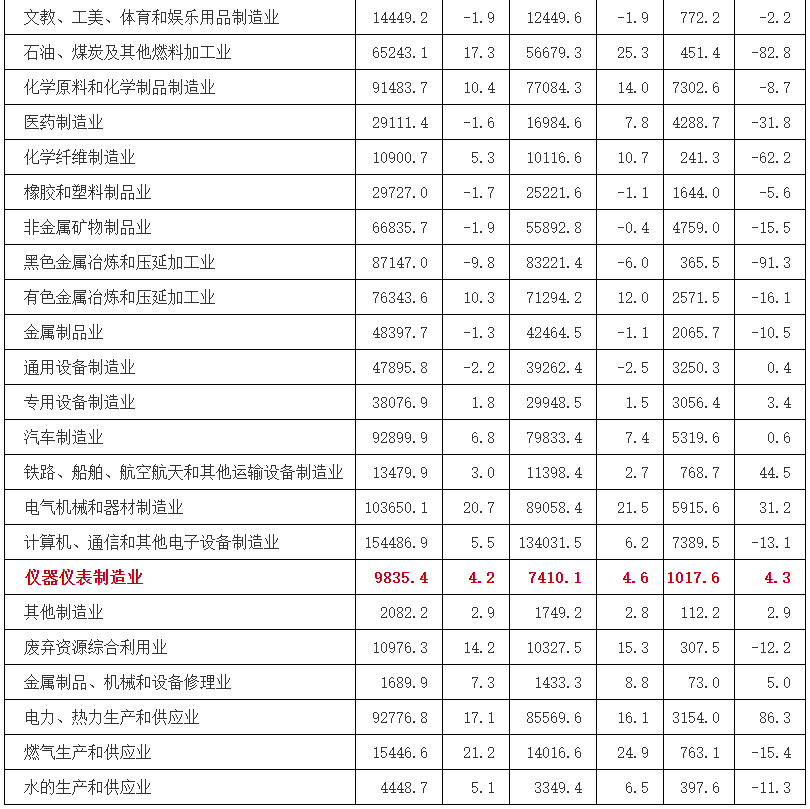 3.有色金屬冶煉和壓延加工業下降16.1%,紡織業下降17.8%,石油、煤炭及其他燃料加工業下降82.8%,黑色金屬冶煉和壓延加工業下降91.3%。